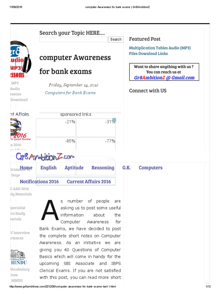 The course is a complete package for computer awareness preparation and consists of video lessons, practice sets, and study notes. Computer knowledge paper is a well scoring paper of any bank exam for any post. Important computer system architecture questions answers (mcq) of computer awareness listing for techincal aptitude for ibps po , mt exam, bank po, clerk, sbi, rbi and other competitive exams and interviews. Especially in bank exams, knowledge of computers is necessary to improve one's score. Candidates have to give more importance to this section.